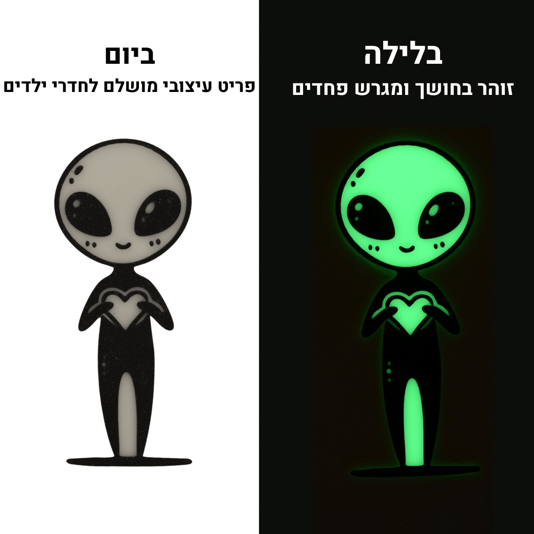 בחרנו בצבעי PLA כאלו שיראו גם מרהיבים ביום, כך שהדמויות שלנו משתלבות באופן מושלם עם כל עיצוב או פלטת צבעים שתבחרו לעצב בה את חדר הילדים.
